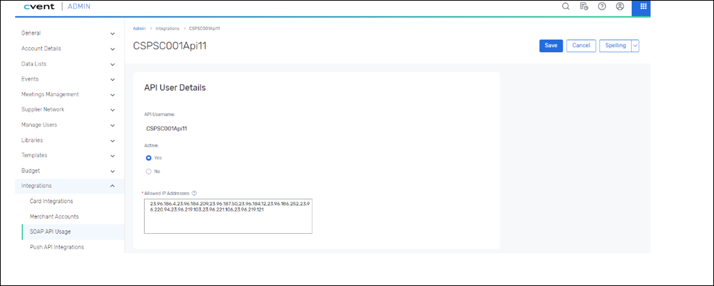 In the remote event that your webhooks may not be working, Cvent may have to Whitelist the following IP addresses in your Cvent account settings in order for the CSI Cvent app to successfully communicate with the Cvent APIs: