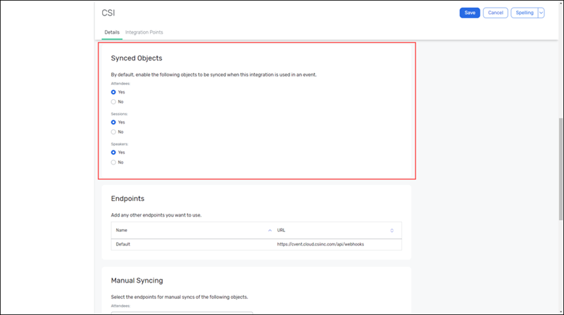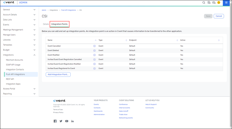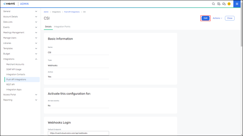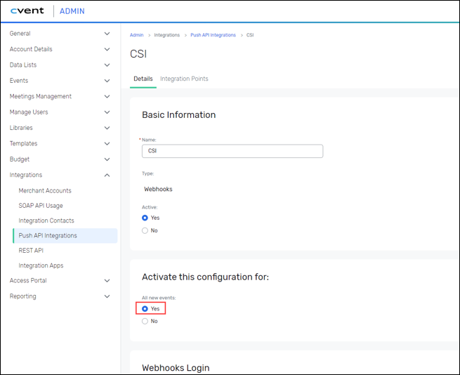 - Default Endpoint - https://cvent.cloud.csiinc.com/api/webhooks