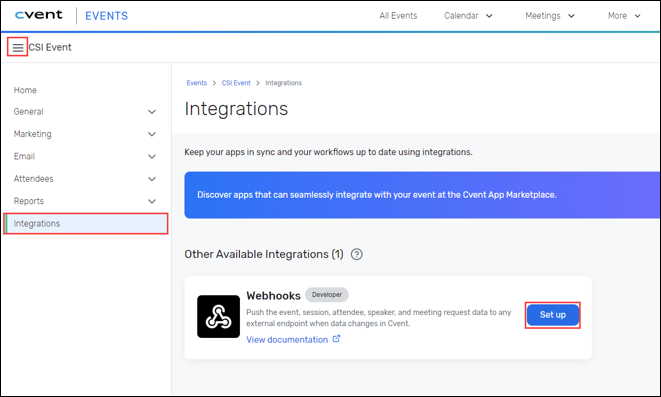 This guide will assist you with configuring CSI Cloud’s Cvent integration. The goal is to make sure you understand and have taken all the steps necessary for the integration to work autonomously. This guide will walkthrough steps to take on Cvent followed by steps for CSI Cloud. Note that some steps can be worked on in parallel.