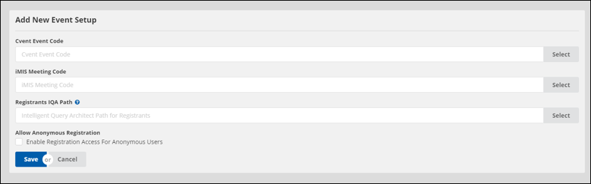 - Cvent Event Code: This will be the event code created by Cvent for the specific event. Based on your account setup, you can use the SELECT button to select the event from Cvent that you want to setup. You are also able to manually enter your Cvent Event Code.