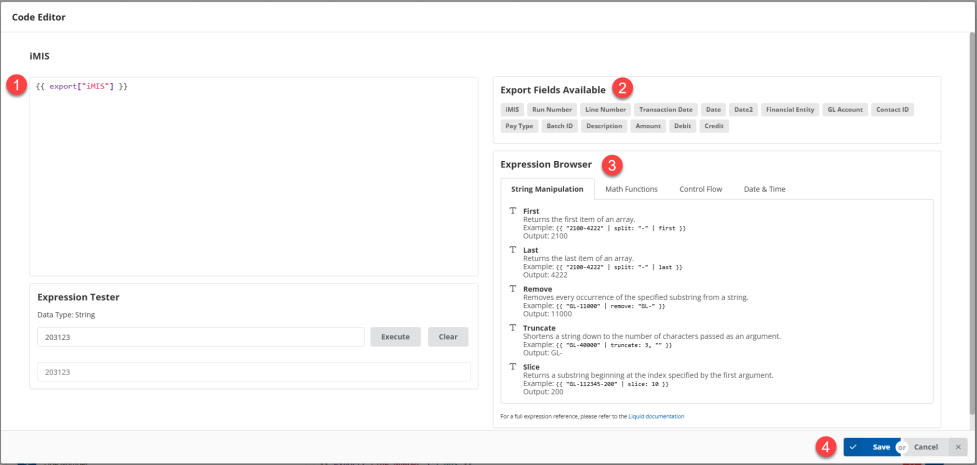 iMIS GL Processor Cloud contains a template expression engine allowing you to insert dynamic data into your exports.
