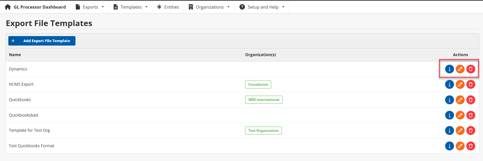 Warning! Deleting a template assigned to an organization requires a new template to be added to the organization before subsequent exports can be processed.
