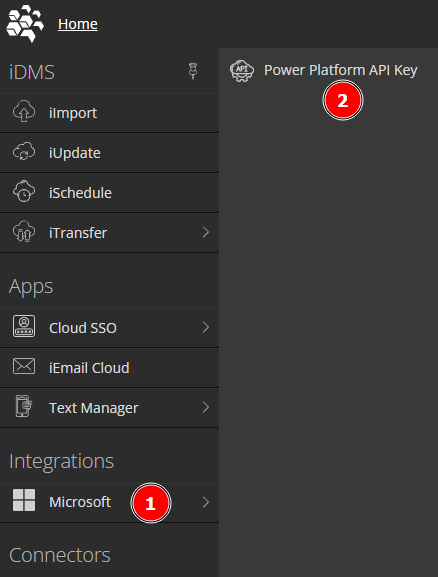 The API Key for Power Automate can be found in the Cloud Dashboard under the Integrations > Power Platform API Key left navigation menu.
