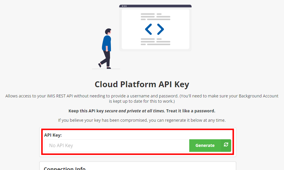 If this is the first time you're viewing this page, simply click the green Generate button to obtain your API key.