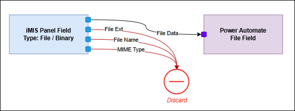 Shown above, when sending a file from iMIS to iMIS Power Automate Connector, we can simply discard the extra information that Power Automate does not have inputs for.