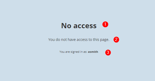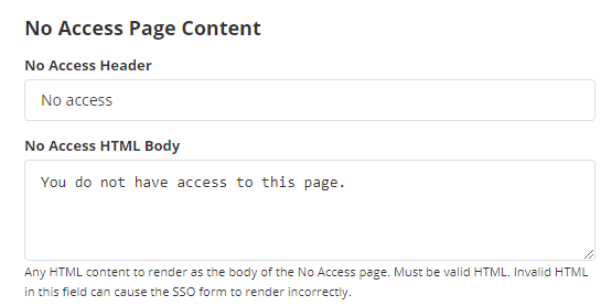 If you would like to customize the out-of-the-box "No Access" page, in the lower-right corner of the Branding section, there are two fields for this, No Access Header and No Access HTML Body.