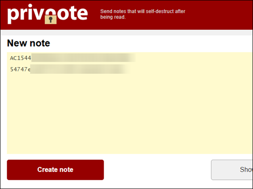 Warning! Do not open the URL to check it. Opening the link will cause the note to be destroyed, and CSI staff will be unable to view it.
