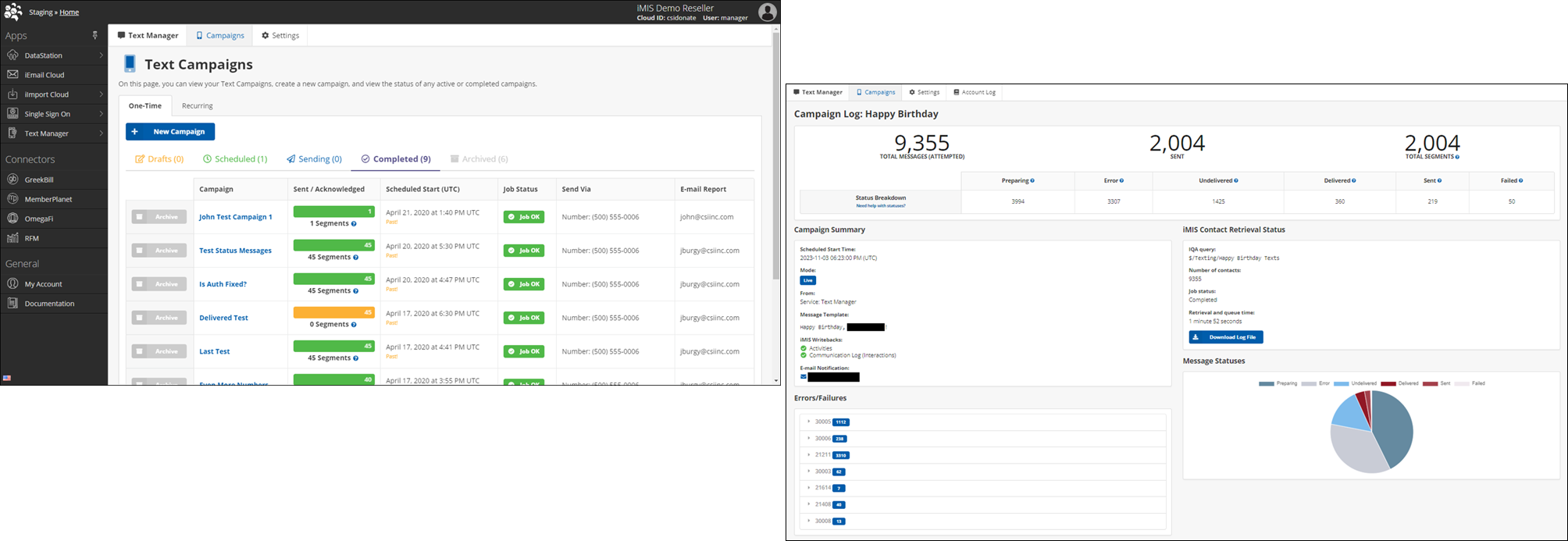 Select the Campaign name to open the status dashboard. The following Status Breakdown appears: