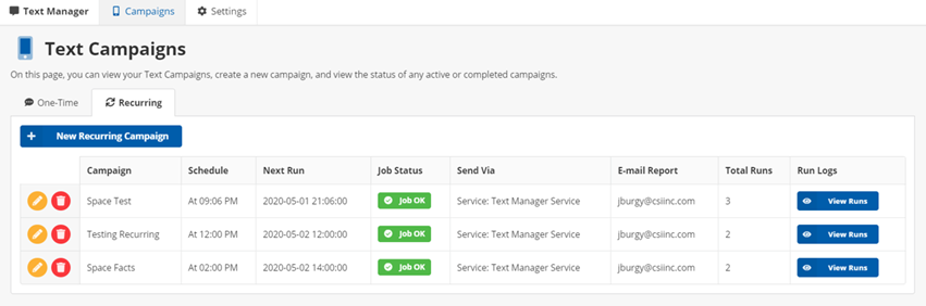 Recurring campaigns allow an organization to schedule a text campaign on a recurring basis.