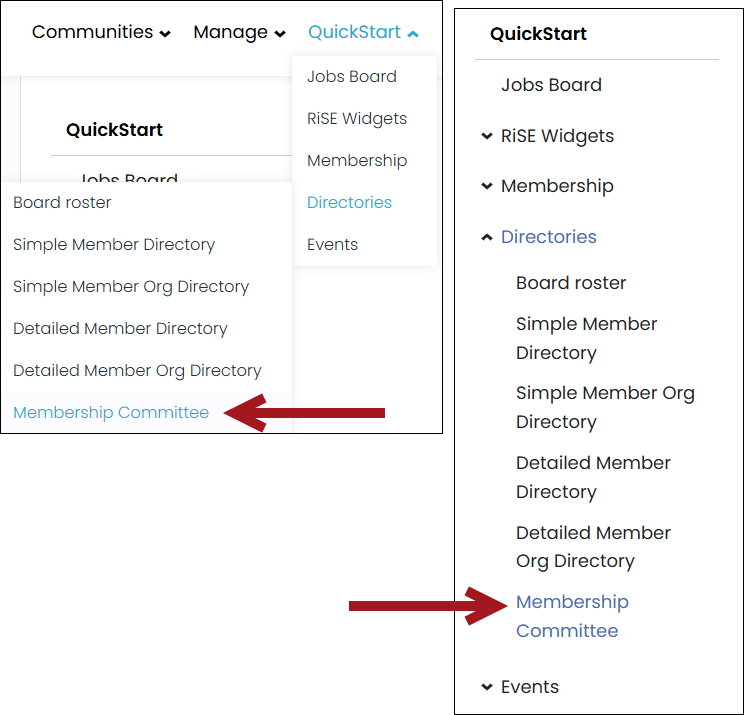 The new committee roster appears in the public site drop-down navigation and in the breadcrumb navigation.