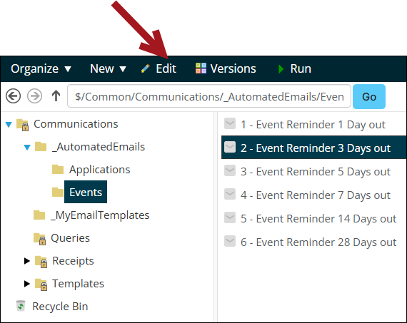 - Go to Marketing > Communication templates > Communications > _Automated Emails > Events.