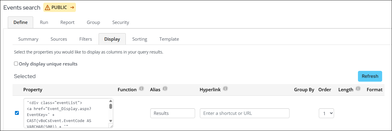 - Modify search results - Update the properties on the Display tab of the query to show different event information in the search results.