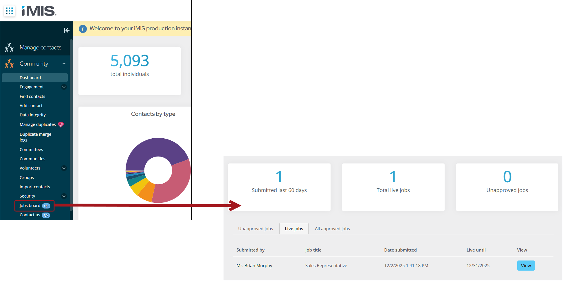 | Submitted Jobs | @/MyStaff/ContactManagement/Individuals/Tabs | Uses a panel to display jobs submitted by the contact and allows staff to update and approve jobs directly from the contact's account page. |