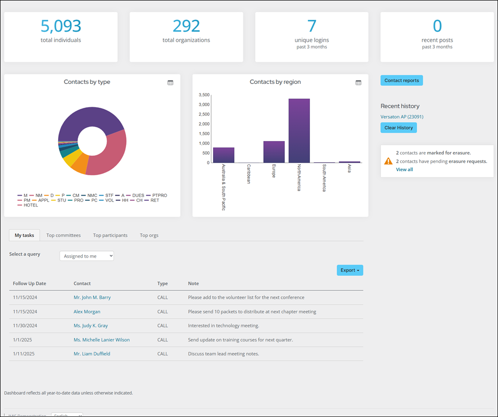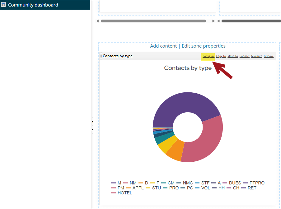 There is a set of queries that can be configured for the Contacts by Region Chart included in the Staff site. The queries can be found by going to RiSE > Intelligent Query Architect and navigating through the following folder path: $/_MySystem/StaffSite/Dashboards/Community.