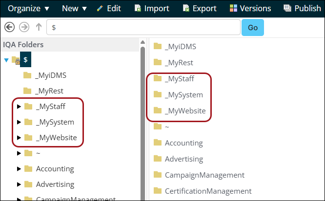 The recommended IQA folder structure to store custom queries has been set up in the QuickStart Template. These include the following folders: