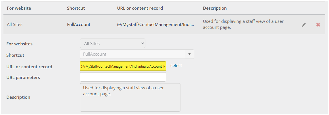- The FullAccount shortcut has been updated to point to the custom Staff site account page.