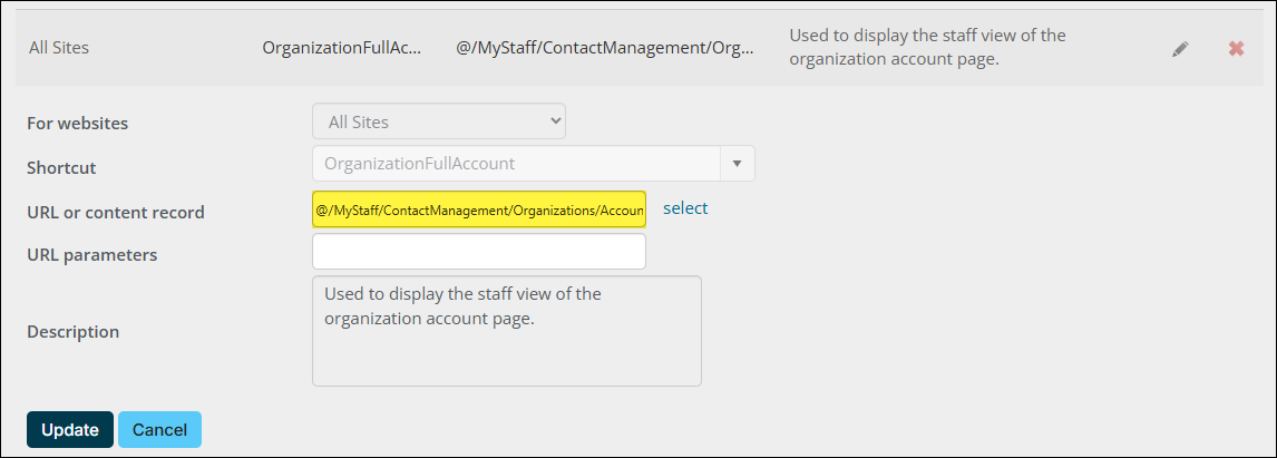 - The OrganizationFullAccount shortcut has been updated to point to the copied page.
