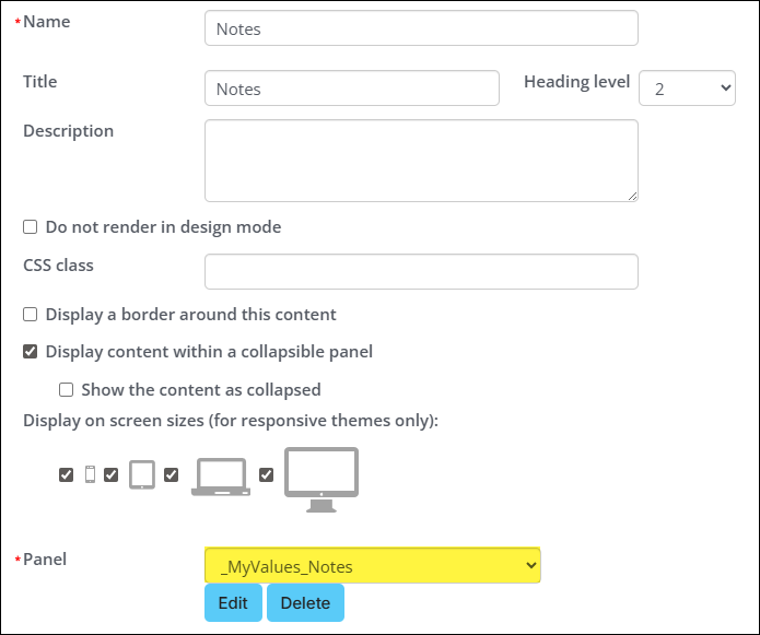 - The new panel appears on the Standalone panels configuration page as a new tab.