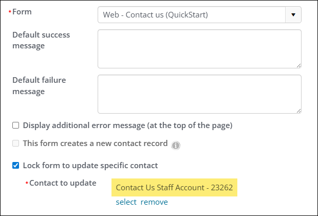 - Scroll down and ensure the Lock form to update specific contact option is enabled. See Displaying a form for more details about this setting.
